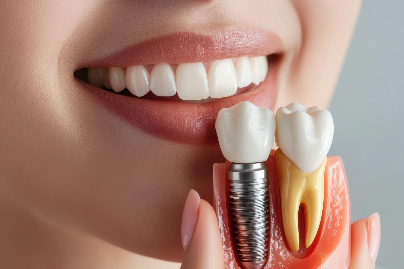 インプラントと骨が結合した後、連結部を装着し、その上に人工歯を取り付けます。自然な見た目と噛み心地になるようにします。