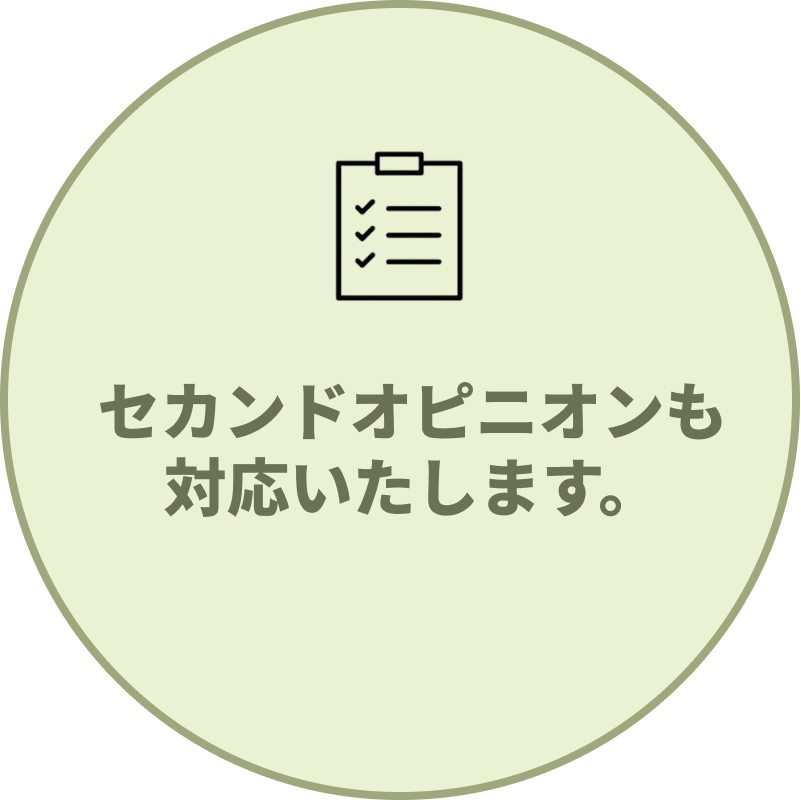 セカンドオピニオンをご希望の患者さまも多く来院されていますので、どうぞお気軽にご相談ください。当院の治療方針のご説明を行い、ご提供可能な選択肢があればご案内いたします。